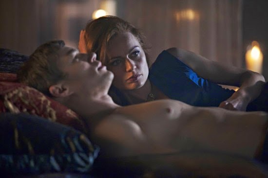 1. Uriel drops in and has a chat with Michael: Dominion loves strong powerful women as the producers portray one of the four Archangels as a woman. Tom and Kat play their characters well where Michael is on edge and serious, Uriel is teasing and exuberant. I loved the part where they're both up in the air, their wings outstretched and them twirling together. It kind of reminded me of two eagles in their famous acrobatic mating dance but this dance was slightly more dangerous. I could never do a trust fall off a ledge even if there's a cushion at the bottom and the ledge is only 2 feet high but Katrine just gracefully falls back, as fearless as her character who takes flight after the fall. I remember in the Pilot where Michael has the same take off style.